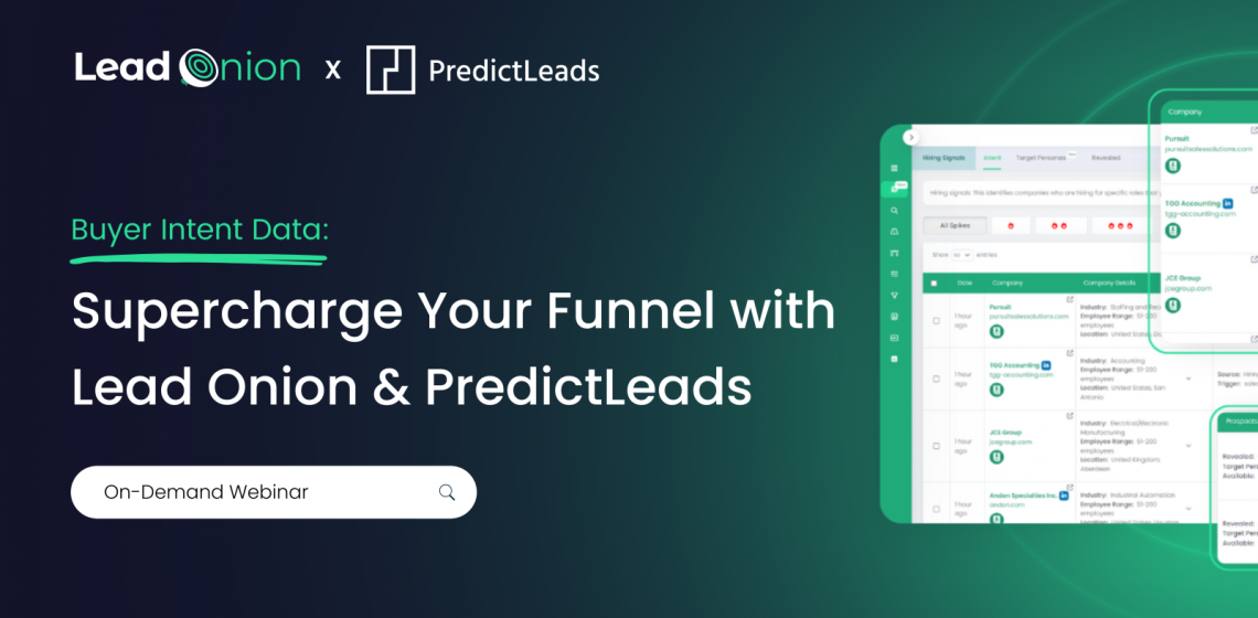 Did you miss our recent webinar with PredictLeads and Lead Onion? No worries – we’ve got you covered with the on-demand recording!